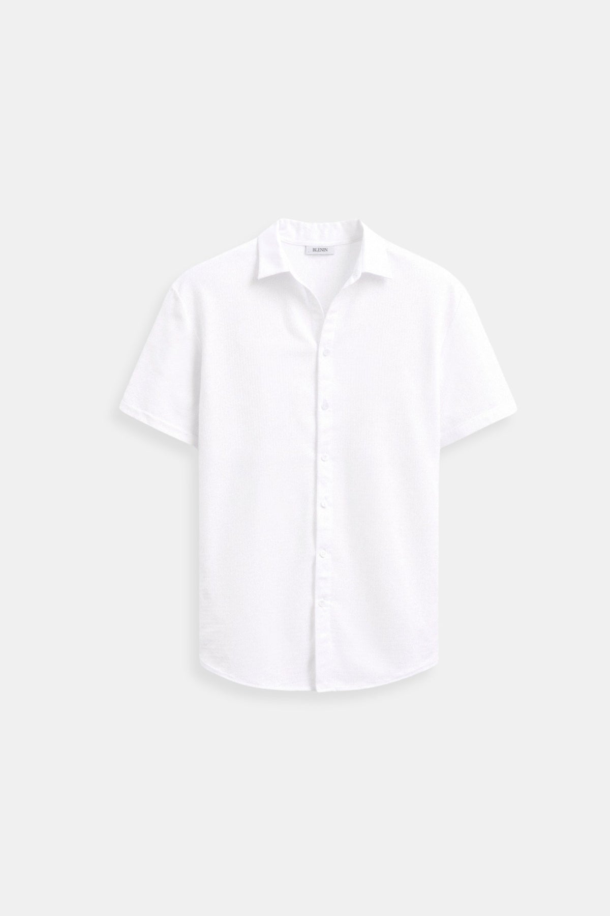 Stay cool and stylish with this classic short-sleeved shirt, crafted from lightweight linen fabric for ultimate breathability. The timeless button-down design and crisp white hue make it a versatile essential for summer holidays, weekends, or casual office wear.
